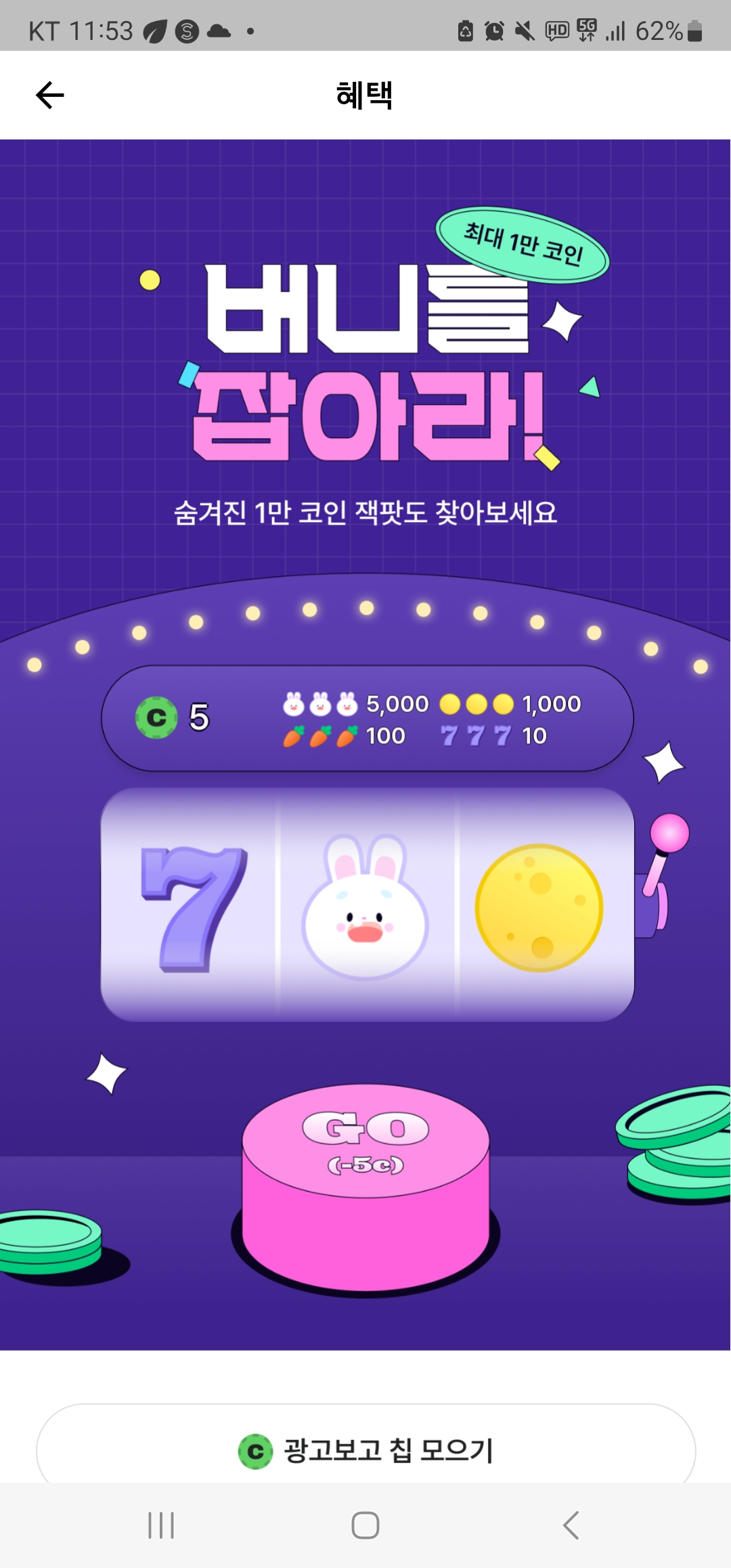 광고를 보게 되면 랜덤으로 코인을 지급해주고